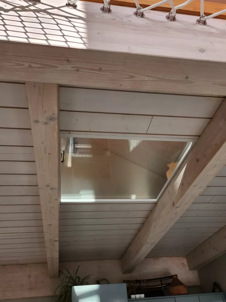 Votre entreprise de menuiserie à Bourg en Bresse à réalisé la mise en oeuvre d'un puit de lumière de 1m par 1m dasn un chalet en Savoie.